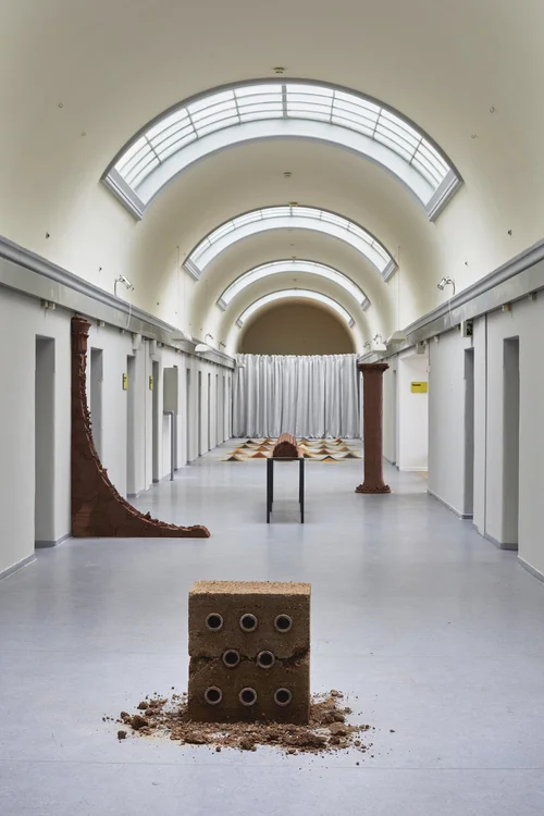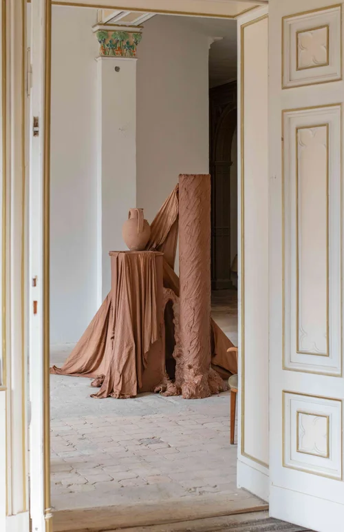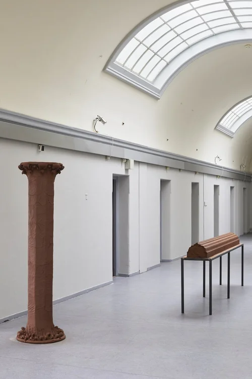 Interacting with the ornamental qualities that characterises the exhibition, Manuel Canu, with the creation of installations, ceramic sculptures and drawings, attempts to establish a relationship between space and self-identity. With inspiration in architecture, he works with opposites between physical and intangible characters, familiar and remoteness, as well as fragility and stability.